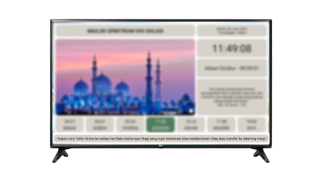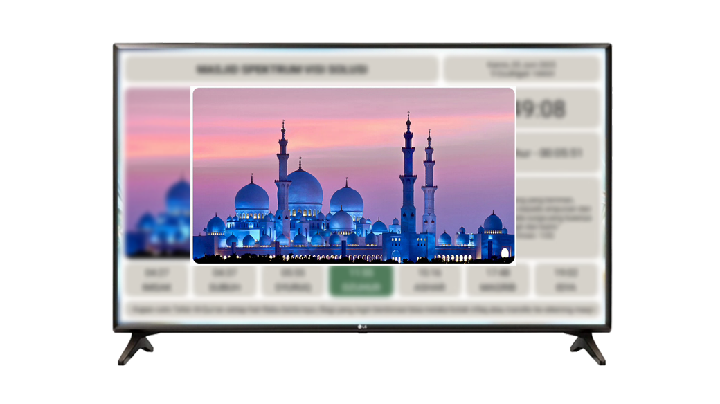 Dengan Dzikr TV Masjid , informasi jadwal shalat, video dakwah, dan pengumuman penting tampil otomatis dan real-time. Jadikan masjid Anda lebih modern, inspiratif, dan terhubung dengan jamaah setiap saat.
